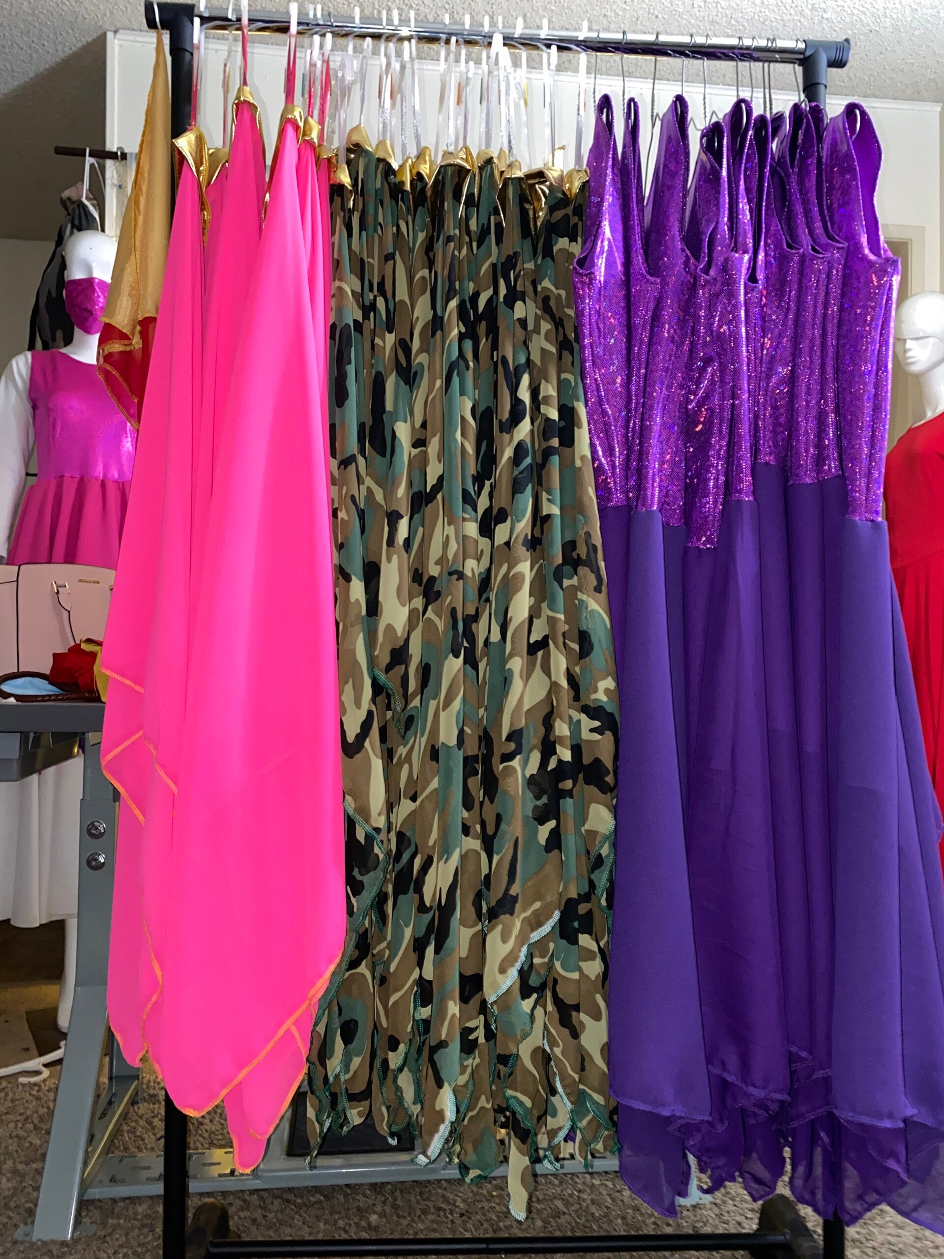 Nuestros vestuarios e instrumentos son creados con propósito espiritual, oración y dedicación, entendiendo que no son solo prendas, sino herramientas de ministración. Cada diseño es confeccionado cuidadosamente para reflejar la gloria de Dios, facilitar el movimiento en la danza y apoyar al ministro en su llamado. No trabajamos en serie, sino con intención y excelencia, cuidando cada detalle, materiales y significado espiritual, para que cada pieza sea una extensión de la adoración.
